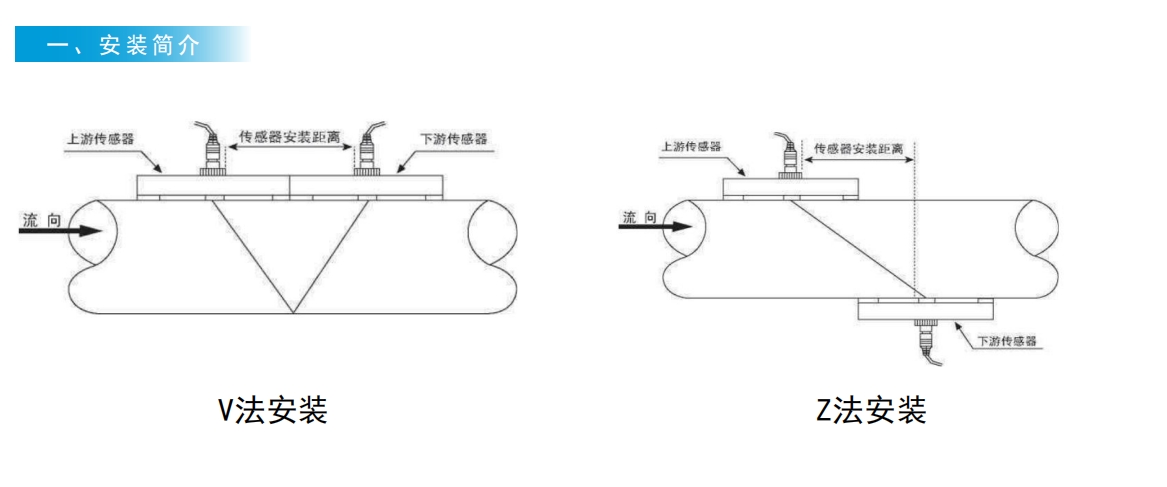 便攜、外貼超聲波流量計(jì)安裝V法安裝與Z法安裝